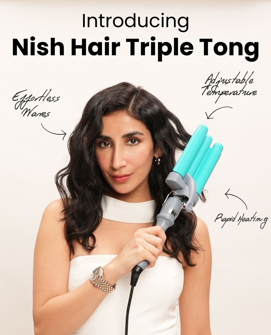 The Triple Tong helps you create soft, beachy waves in minutes without any effort.